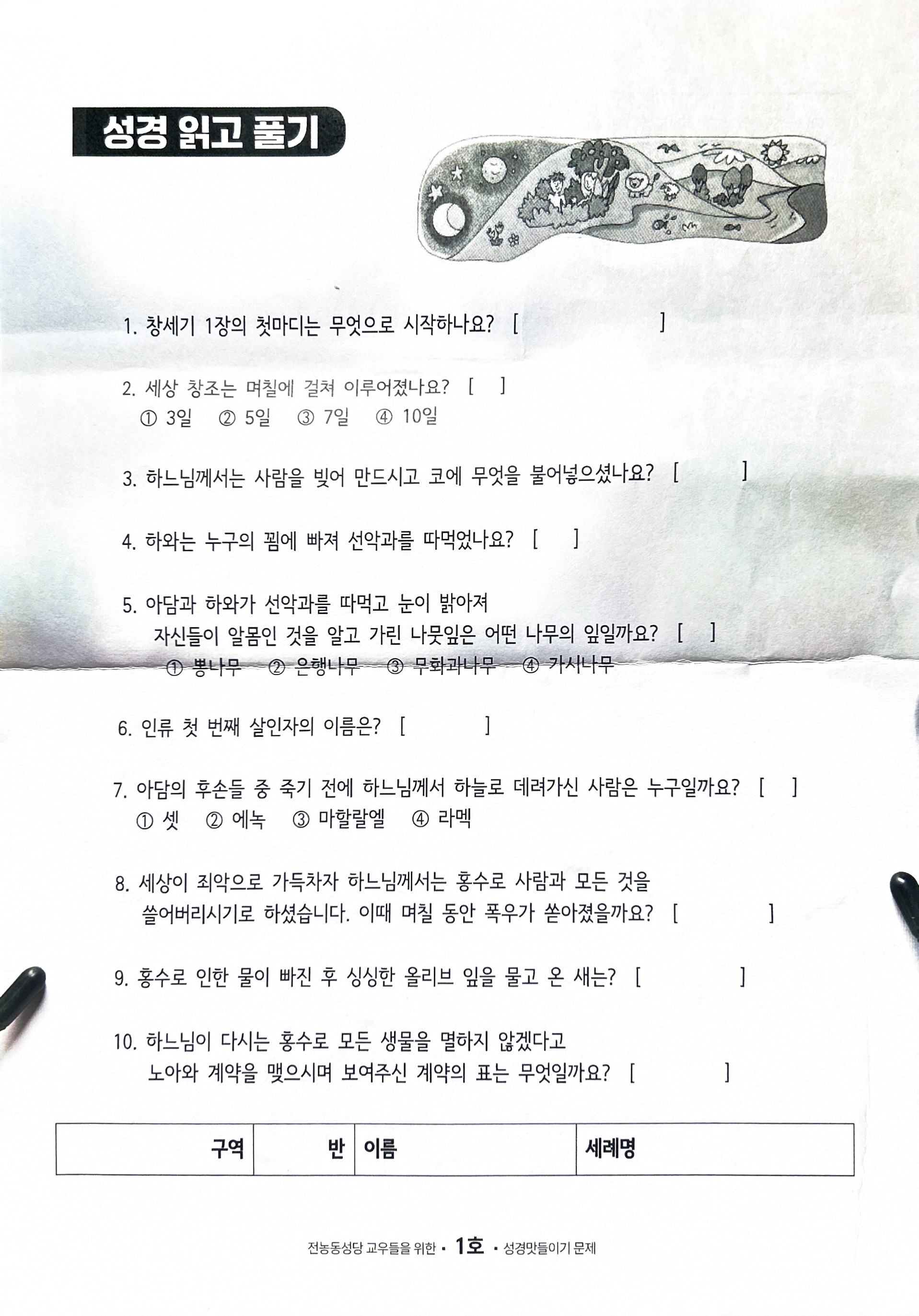 출처 : 전농동 성당 교우들을 위한 ● 1호 ● 성경 맛들이기 문제